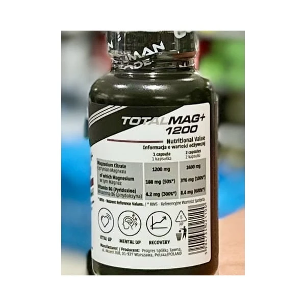 Human Code Total Mag+ 1200mg 120 kapsułek to suplement diety, który dostarcza OGROMNĄ DAWKĘ wysokiej jakości magnez w formie cytrynianu magnezu oraz witaminę B6.